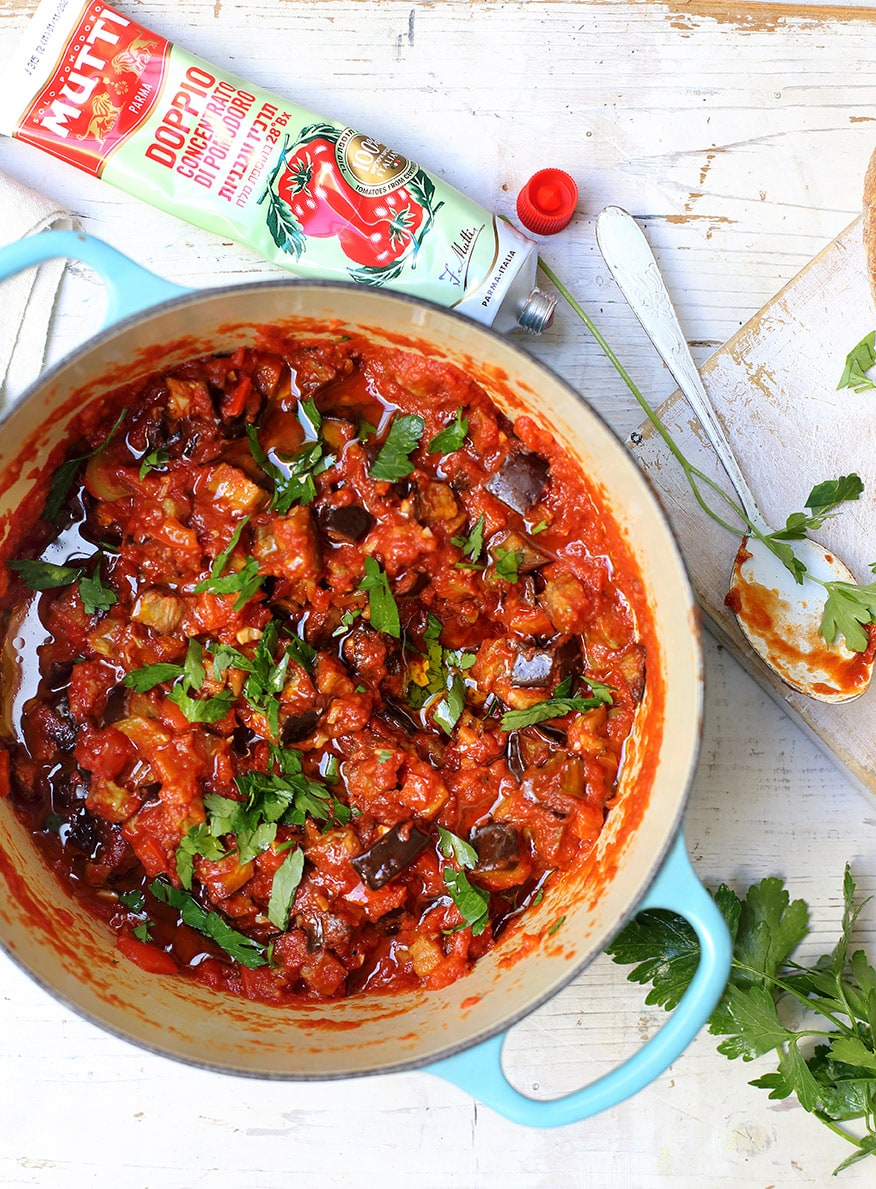 סלט מהמטבח המרוקאי, שילוב נהדר בין חצילים קלויים והעגבניות המתקתקות של Mutti. הסלט הזה נהדר בארוחות שישי, כממרח פיקנטי מלא בטעמים ומרקמים.