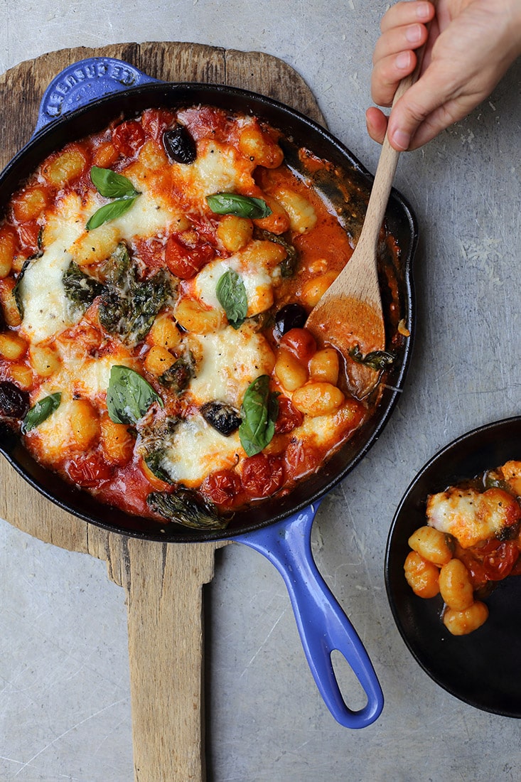 - חוצים את העגבניות שרי, מוסיפים למחבת ומערבבים. יוצקים את העגבניות והרכז ומבשלים על אש בינונית למשך 10 דקות.